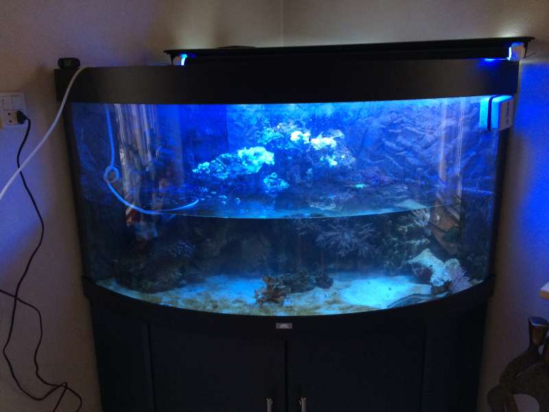 det blev sat op den 14/12-2013, alle sten kom fra mit gamle akvarie, (kørt i 3 år) alle fisk og koralle har gået der i ca 3 uger. men tænkte jeg vil gi det en "rense behandling" (navn nævnes ikke da jeg ikke vil nedgøre nogen forhandler eller produkt). har fulgt doseringen til punk og prikke. doseret til 300 liter (har et hjørne 350l) for at være på den sikker side......det var jeg så ikke. doseret i går aftes, og her til morgen opdage min kone det var helt galt.
