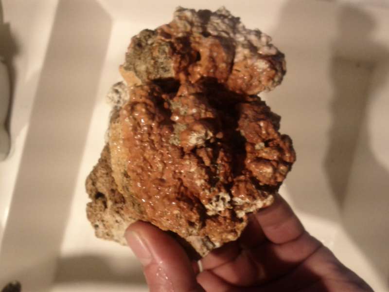 Men der skal lidt flere sten til og lagde mærke til at en af de sten jeg havde liggende havde ligesom et rust/ farvet felt kunne godt ligne det kommer 'inde'' fra selve stenen. Alle sten har ligge i blød med en pumpe og et par timer i en let opløsning kloride og skyllet igen indtil lugten var væk.