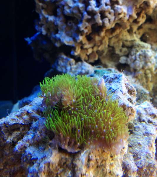Så har nu kommet en Hugo og en enkelt blødkoral i, og det ser her på 4 dagen ud til at fungere ganske godt. Hugo hygger med alle mine alger og korallen bliver pænere og pænere for hver dag. Så jeg er meget begejstret. :GO