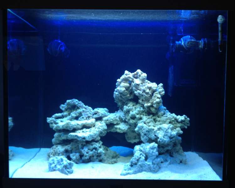 Aquascape er opstillet med døde sten (tidl. Levende sten), købt brugt af en mand der tog dem op af sit eget akvarie for 4 uger siden.