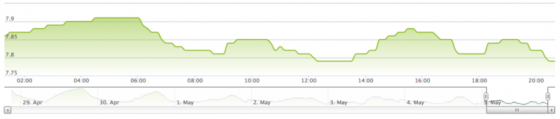 Husk på at om natten er din pH lavere end om dagen. Så hvis din pH er 7,9 om formiddagen er alt ok.