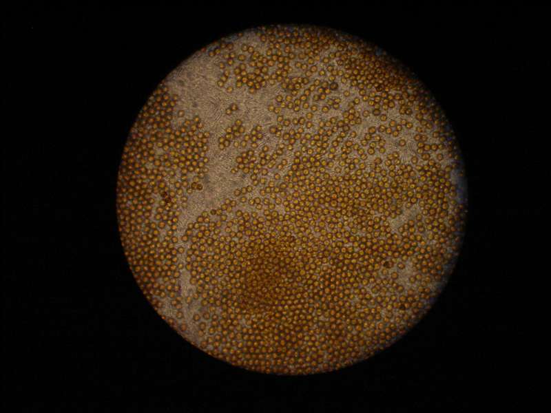 billedet forestiller en aiptasia jeg har klippet over for at prøve fotografere zooxantheller(de tydelige brune prikker