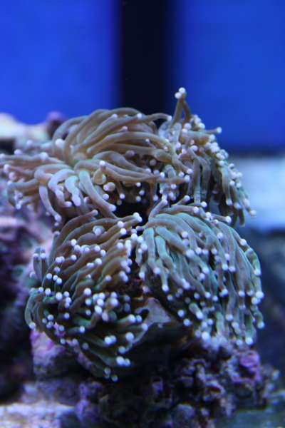 Værdierne er sådan set ok, men calcium(410) og magnesium(1235) skal hæves en smule(der kan nu kræses lidt for værdierne!). Korallerne har siden kalkreaktorens udsving grundet død pH-controller ikke haft meget farve (sps). Jeg kan dog se de grønne farver er ved at komme tilbage. Jeg har lidt halimeda alger, som er begyndt at skyde frem, hvilket normalt anses for et positivt tegn, da de næsten kræver samme betingelser til vandkvaliteten som sps-koraller.