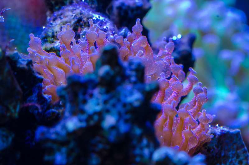 Sten og koraller hygger sig i sumpen til mit Fluval Edge. Håber det hele overlever på trods af den lave belysning/cirkulation