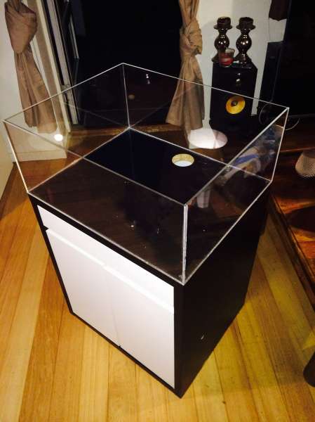 Det er et opgraderet ikea bord hvor jeg har sat låger med laminat på:) det hul der er iforvejen er fra mit gamle akvarie:)