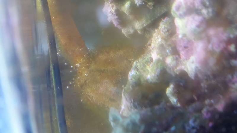 Jeg er så begyndt at få en del brune alger i min sump. Flest er der i det første kammer, hvor skummeren er, men der er også i rummet med LS, og der er også mange på den ekstra fødepumpe til skummeren, som står i rummet med LS.