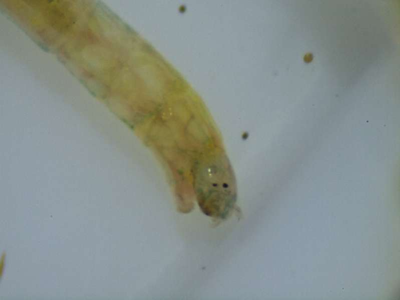 Vinduet havde stået åbent en aften, og lyset havde lokket stankelben indenfor. Men hvordan det er havnet i akvariet er mig en gåde. Der er dækglas på akvariet med to små afskårne hjørner til ledninger som eneste åbninger. Her må dyret være dumpet igennem...