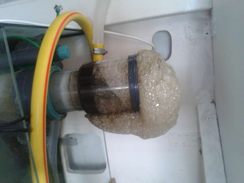 Farven på skummet viser at den har meget travlt med at fjerne møg fra akvariet.