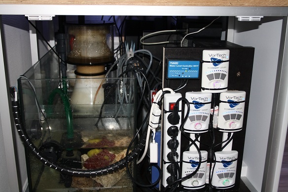 450 liters tropeakvarium m weissglas i front og sider, skab fra Tropeakvarier. Lys maxpect RSF 300. Retur Octo 2. Cirkulation: Vortech 2xmp40Skummer Octo 250. Osmolator: Ato Duo. UV Deltec uv 39
