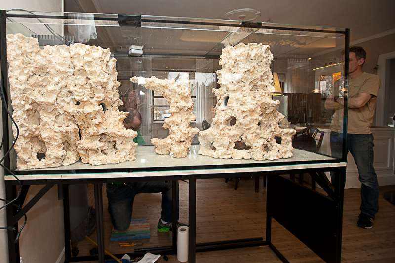 Akvariet blev bestilt (165x65x80) og et understel i rustfrit blev fremstillet. Nogle vil sige at højden er lige vel meget, men med en smal bølgebryder, lange arme og en hel del Maxspect, så fungerer det faktisk ganske godt.