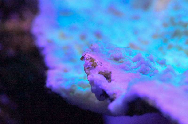 Min grønne acropora har fået nogle røde nullermænd i den lilla kant. Jeg kan ikke se hvad det er og ligner små nullermænd i brun/rødt