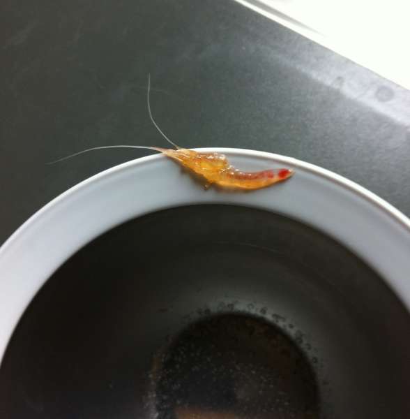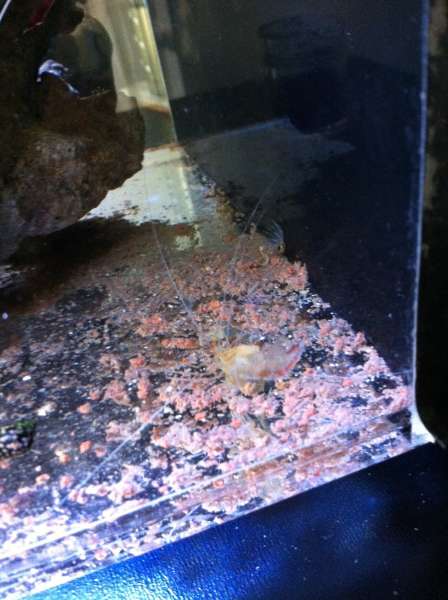 Til mit lille Nano akvarie har jeg en Dannebro's reje. Den er selvfølgelig vokset og så regner jeg med at det her skete :shock: