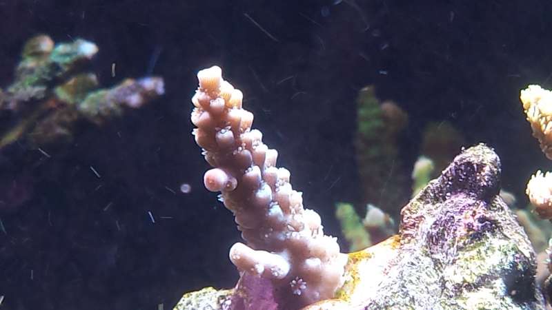 Ja og så er jeg forsigtig optimist at "det värste" er overstået. Har i dag da jeg målet for KH, Ca, Mg erfaret at min Hysterix og en af mine absolut favorit SPS har fået en lille lys väkst skorpe på spidserne