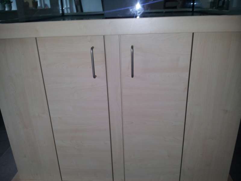 Alle midtersprosserne kan pilles ud uden skruer så der er nem adgang til sumpen... der er lavet 4 huller i overløbet så jeg har et ekstra til kabler. Der er monteret et loftudtag lige ovenover akvariet, som har fået sit egen gruppe med indbygget hpfi relæ... Overdelen skulle også have været lavet på en måde, så jeg kunne tage én sektion af, af gangen. Men det blev så åbenbart til én stor kasse som er vildt uhandy at få af alene...
