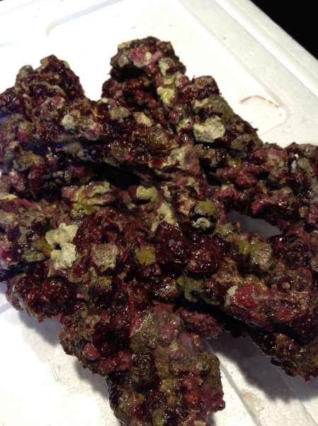 ja fyldt med små perlesten og tydeligt at der er cement i og så tager de 129kr pr kilo. kopieret fra deres side (De er absolut første klasses kvalitets levendesten. Super friske. ...)