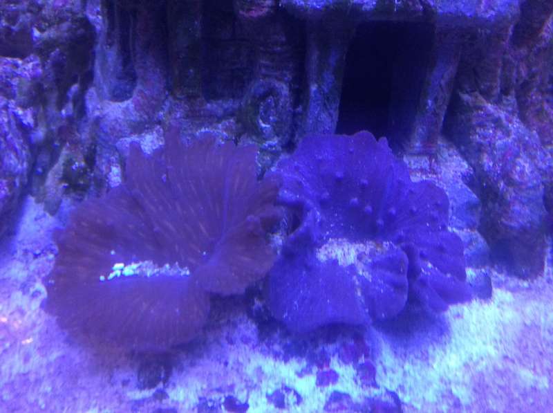 Jeg ved ikke hvad de to koraller heder, men det er et par slumstomer jeg har fået med en anden koral