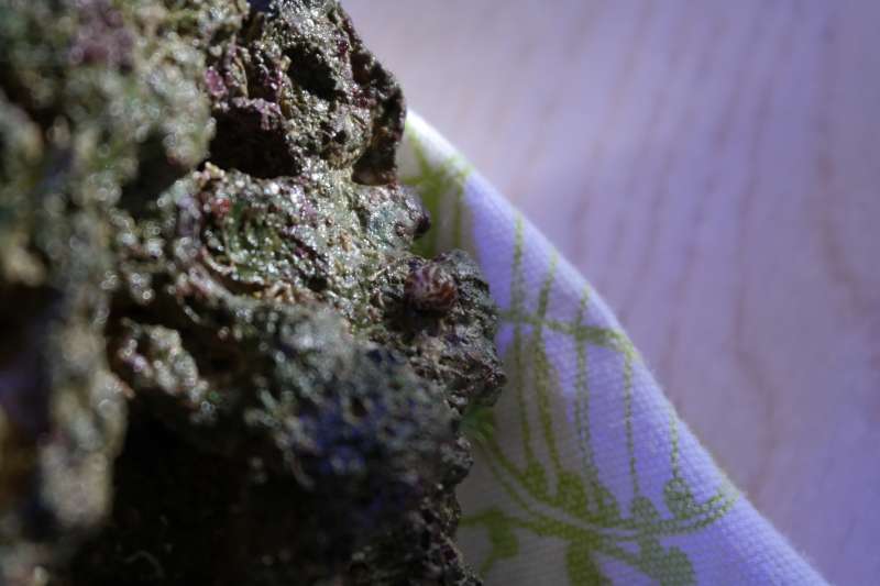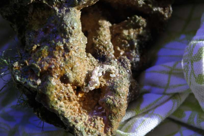 Og så lige et billede til - godt eller dårlígt? Både søstjernen, men også den lille dims. Der er et par stykker af dimsen på stenen. Den holder til inde i det hvide "rør" man kan ane, og trækker sig ind og ud af det.