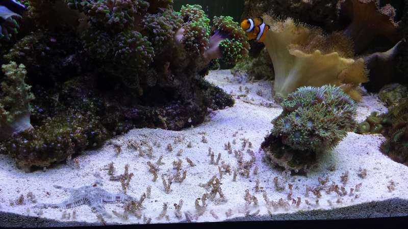 Hele min bund er besat at kalkrørorm. Min rævefjæs æder den i stenene, så de bliver i bunden. Det bliver noget af et job når det skal tømmes og have det nye bord under