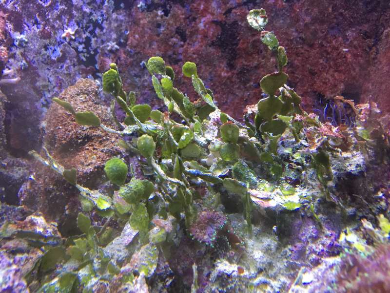 Jeg fik for et par år siden, nogle Kenyatræer fra en flink mand herinde. Med dem, fulgte nogle smukke grønne kalkalger som jeg stadig har. I begyndelsen spredte de sig lidt og skiftede fra meget grønne til en mere kalket hvid/grå farve for igen at blive meget grønne. Over tiden er de ikke så fyldige længere og pt er de igen matte og mere mørkegrønne. Med lidt 'kalk' på sig.