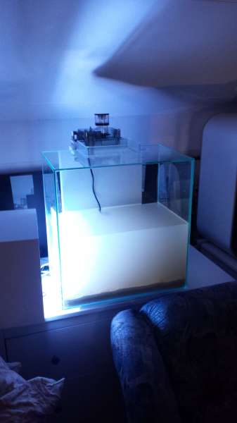 Så det endte med at jeg købte et sort fluval edge her på forum, og modificerede det lidt og startede det op inden jeg overhovedet var påbegyndt at lukke det andet ned. Den vej kunne jeg jo beholde nogle af de koraller jeg var glad for