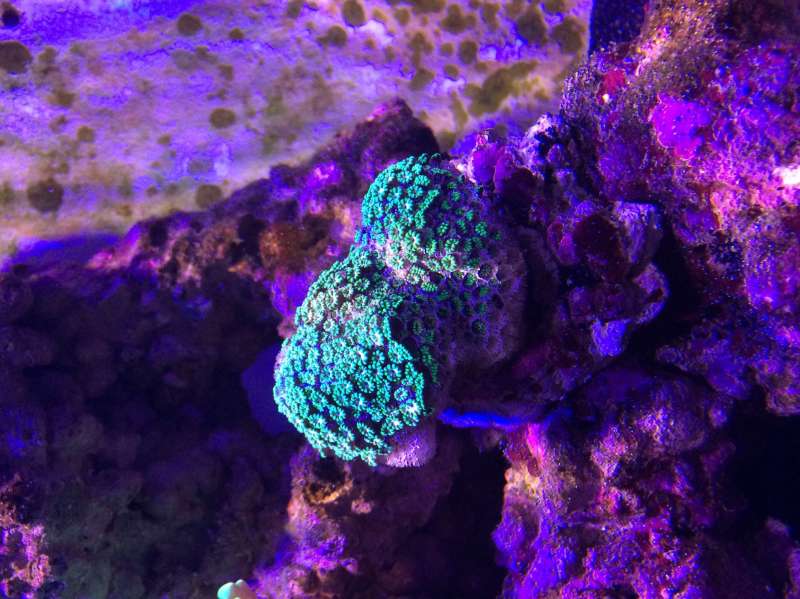 Jeg har en lille sten med Zoanthus Watermelon og en anden med grønne og gule polypper (kender ikke lige navnet på denne)