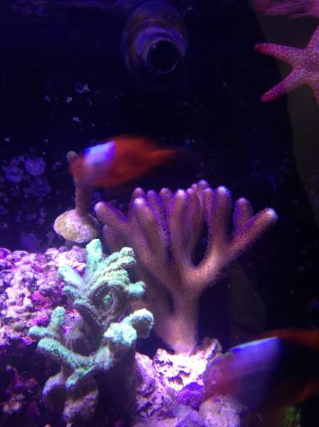 Det skal siges at da jeg startede akvarierne var jeg på SU :BA , så det var bare planen med lidt fisk og ingen koraller. Jeg fik prøvet krafter af med aftrækkere, muræner, kiruger osv. Jeg lærte rigtig meget.. Også at for mange fik og få hyppig fodre lige pludselig gav bagslag... Jeg røg ud i et kæmpe alge bloom.. Jeg solgte lidt fisk, og besluttede mig for at have lidt koraller i.. Det har så taget overhånd :K