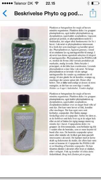 Jeg har prøvet selv at lave planktonen, og det er ikke svært. Men at tilsætte det det rent til akvariet kunne jeg aldrig drømme om. Den væske som planktonen(phyto) er i burde være fyldt med næring.