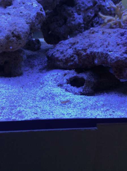 Det er stadig indkøring her, med en del tråd alger på nogle af de levende sten jeg hentede hos én og lidt red cotton alger på sten jeg hentede ved en anden!!! Øv. Hertil en lille smule planariea.../ red flat worm.....sådan noget TIS... :wc: MEMO.... , overvej at starte op med HELT DØDE sten i søheste baljen når det blir tid at sætte den op :f2: