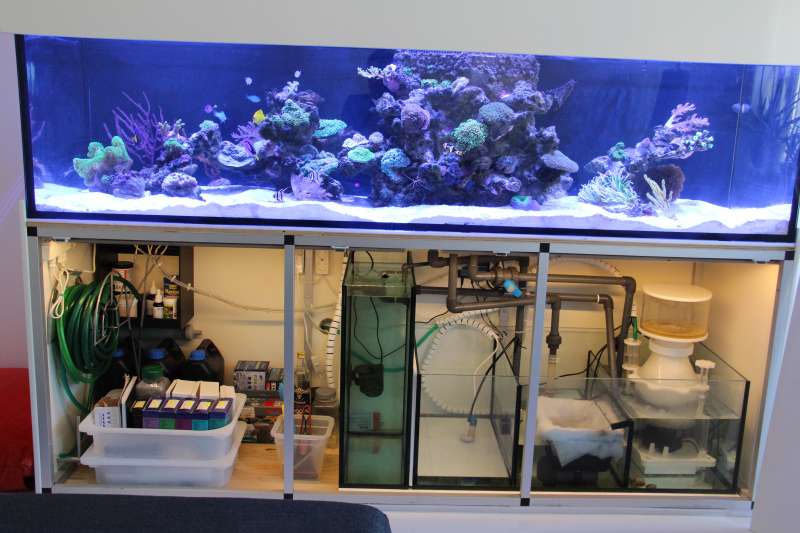 Er bestemt ikke "mester" i saltvandsakvarier, men igennem tiden har man jo fået mere og mere erfaring. Så har da nok viden til i dag at kunne køre et mixed reef uden de store problemer, vil jeg mene. Kan genkende de mest almindelige symptomer, når tingene ikke trives, og ved, hvad der skal til for at rette ind igen. I sommeren 2012 begyndte vi at lege med tanken om at gå i gang med et nyt akvarieprojekt, som så er vores nuværende den dag i dag. Der kom vand i det i december 2012.