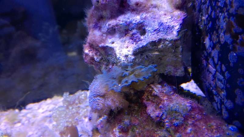 Hvad er dette. En blå algelignede vækst på en levende sten. Ser ud til at vokse fra ingenting for en uge siden til foreløbigt 2x4 cm
