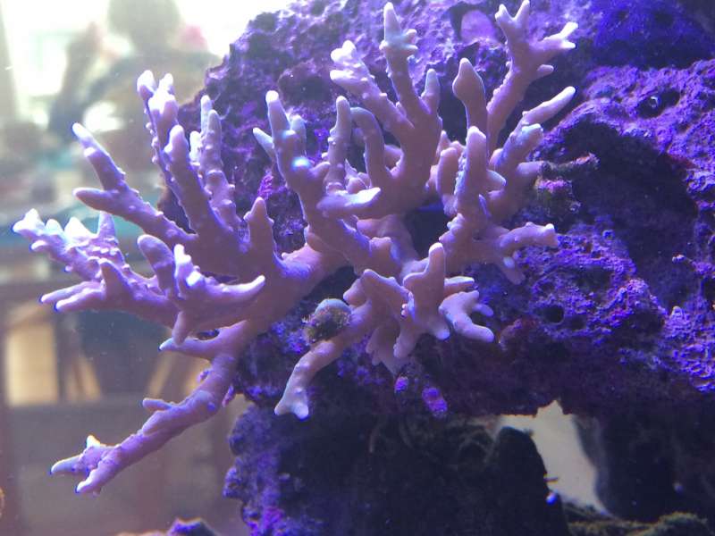 Mener dette er en anacropora spinoca.... Svært at se, men spidserne er ved at blive en lille smule grønne..... Spændende... Andre bud på hvilke anacropora det er? Den vokser forøvrigt fint.