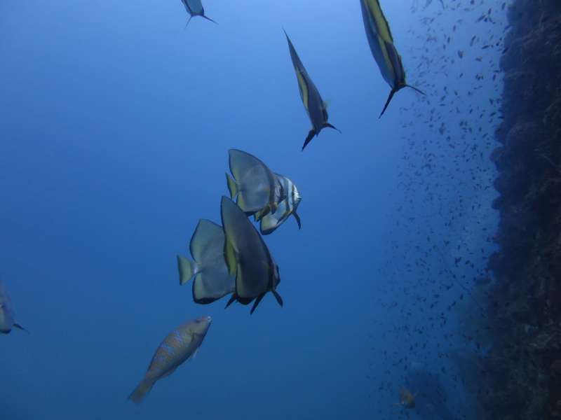sikke det vrimler med fisk,det må være meget mad der over revet om dagen