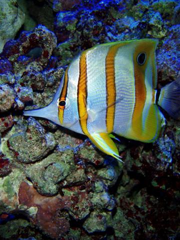 Pinsetfisken er nok 10-11 cm og dejlig buttet, har aldrig set den tag frost eller flagfoder men den må leve godt at det som den finder i de LS