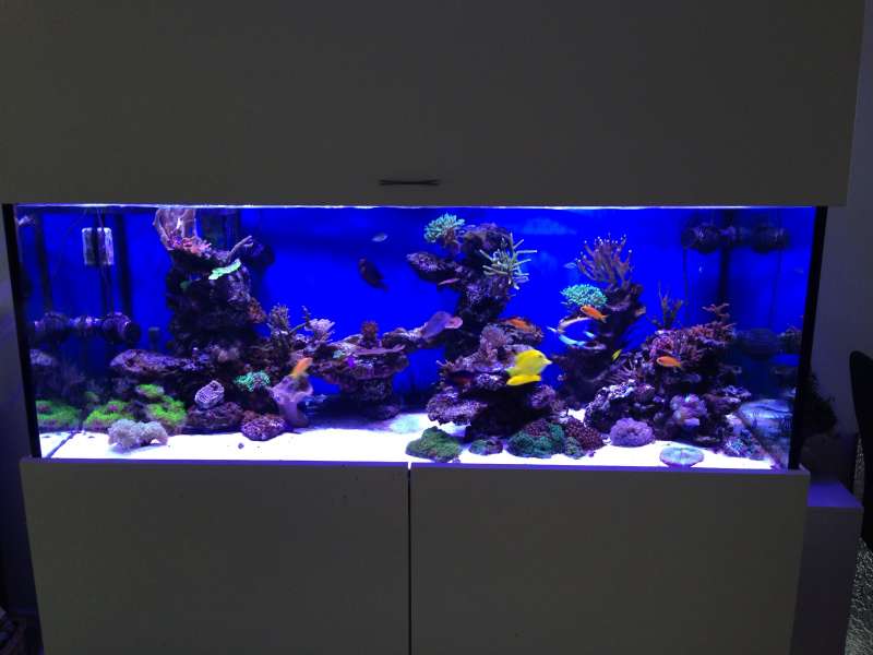 Po4: ikke målt længe - kun visuel observation . Skraber ruder hver 3-4 dag, så formoder den ikke er høj. Desuden har flere kedelige sps fået "den rigtige farve" den senere tid)