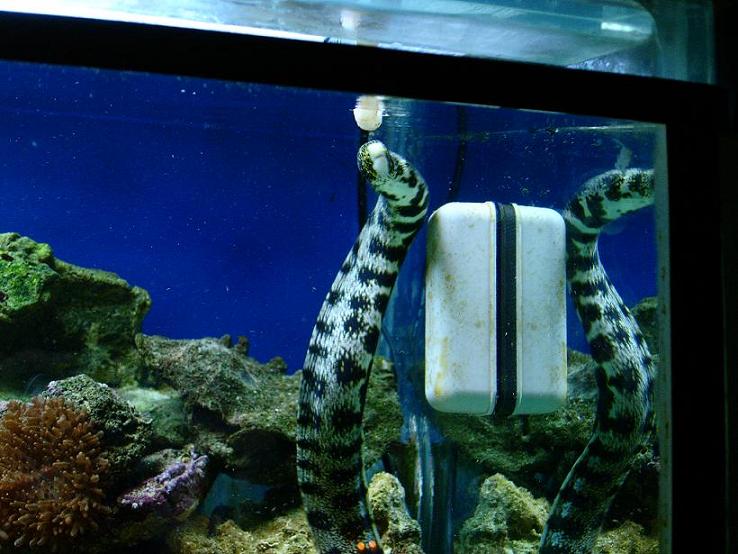 med hensyn til murænen og at den skulle bide, så prøvede jeg nogle dage inden min blev solgt, at holde hånden ned til den indtil den havde snuset lidt for så bare at svømme væk. Dumt? jo joooo