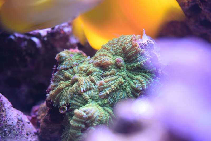 Gorgonia har stået et par døgn nu. Den har polypperne ude/inde osv på en, for mig at se tilfældig måde. Kan være den får lidt for meget flow? Vil prøve at flytte den lidt ned af stenen og se om det giver mere konstant PE...