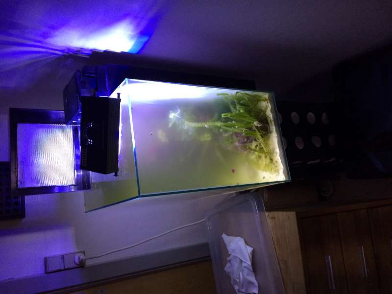 Ja det er nok Macro alger der er opløst og mange tak for Info jeg var lidt usikker på om det var det der var tale om med det er det sikkert men i et edge med så lille filter er det noget der kan kvæle hele akvariet da filter svamp stopper til og så stopper filter og det er den eneste cirkulation, men vandskift "reder" det med det samme men man kan ik vente til i aften eller sådan noget det er bare om at komme i gang og så må job være job.