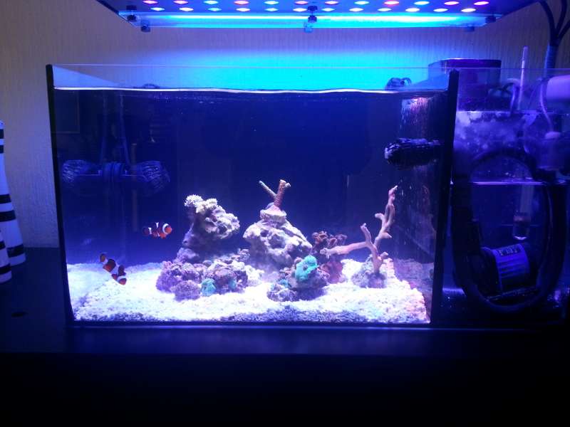 Efter mit glasrose uheld i det 90l (læs mere her http://saltvandsforum.dk/viewtopic.php? ... 58#p676258" onclick="window.open(this.href);return false;) besluttede jeg mig for at finde noget andet og endte med det her 54l, højden på det 90l og skummeren spillede bare ikke 100% sammen, skummeren skulle gerne have minimum 23cm vandstand og det var svært i det andet.Psyk-mads skrev:Spændene projekt! Ligesom de andre du har haft/ har gang i![]()