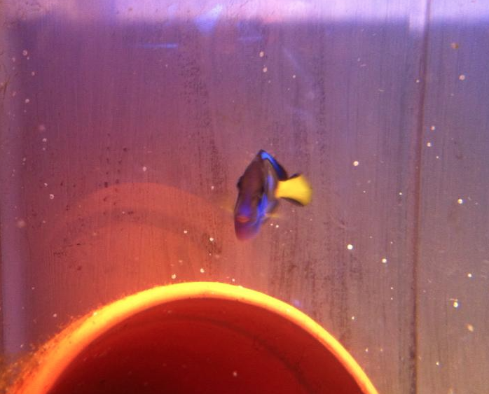 Har fundet en palet, der afviger fra det normale. Denne er sort i hovedet og på kinderne. Og på dens venstre side er den halvrunde bue ikke spids i enden, men ender i en firkant. Ville lige vise et par billeder. pt går den i mit lille bitte refugie. Kunne ikke få mig selv til at lade den blive ved forhandleren, så nu må den være der til jeg kan få den i det nye akvarie. Og så skal den ellers bare nurses som en lille guldklump.