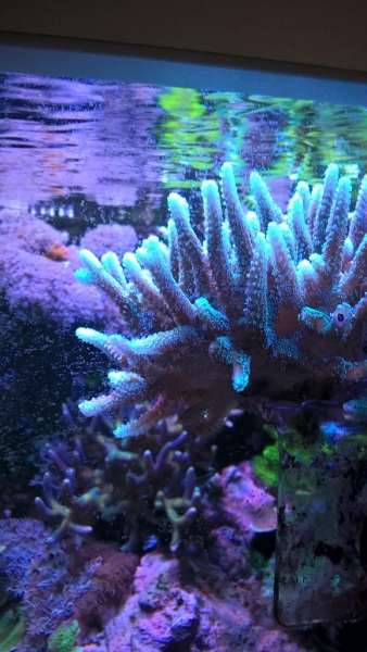 Nå men efter ulykken med VSV så kører det hele igen og jeg har nok skiftet cirka 120 liter vand de sidste 4 uger. Jeg døjer lidt med brune slimalger og dem havde jeg også da jeg brugte VSV. Det skyldes sikker fosfat og jeg kan se at algerne er aftagende men og de har ikke siddet på korallerne. Jeg tror måske de skyldes at mine knap-polypper var placeret et sted hvor de ikke fik lys nok. Polypperne begyndte at dø og har sikker afgivet noget fosfat. Polypperne er flyttet og har det meget bedre nu.