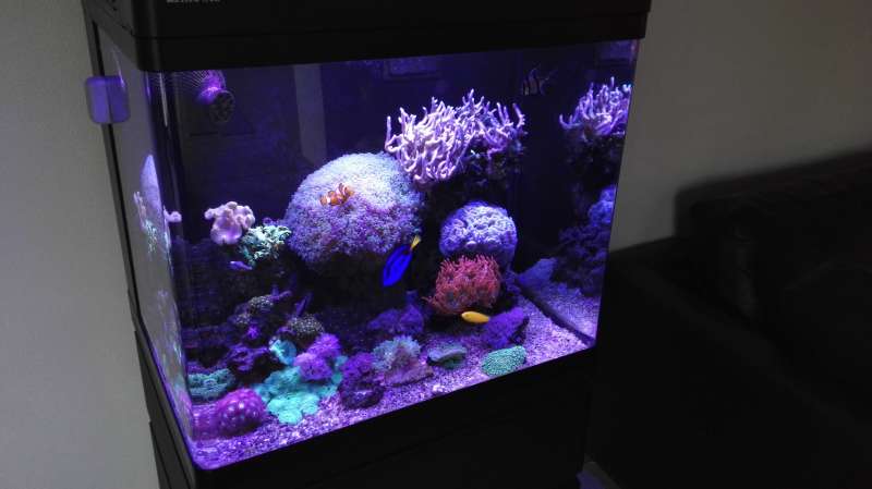 Jo men jeg kunne ikke nænne at sælge mine koraller som jeg har haft i så mange år. Så her står et mindre akvarie med en ret fin udstyrsliste. Har dog ingen fisk. Foruden koraller er der pudsereje, tuxedo pindsvin, eremit krebs og en snegl. Har ikke lavet en tråd om akvariet og der kommer sikkert heller ikke en for med alle mine skift har folk det med at pege fingre og det gider jeg ikke. Så har med vilje holdt lav profil herinde. Der er dog stadig saltvand i huset