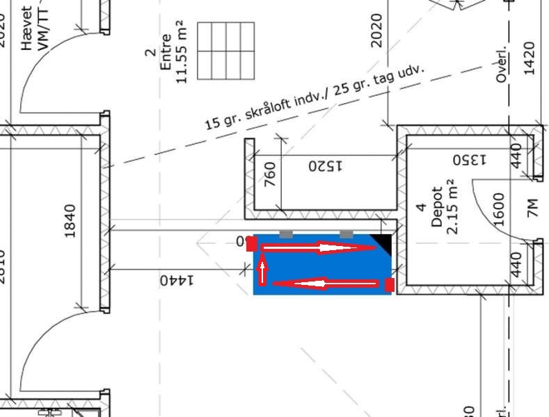 alternativt så kan jeg placere pumperne på siden ind imod vægen, det skaber dog et grimt hul.