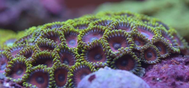 Zoa'er laver bæ som de fleste andre dyr og det er så det du ser på foto, nogle bruger lang tid på at diskutere om de laver bæ eller om de "regulere" deres symbiose alger, men det er sikkert at det du ser er helt normalt og ikke nødvendigt at bekymre sig over.