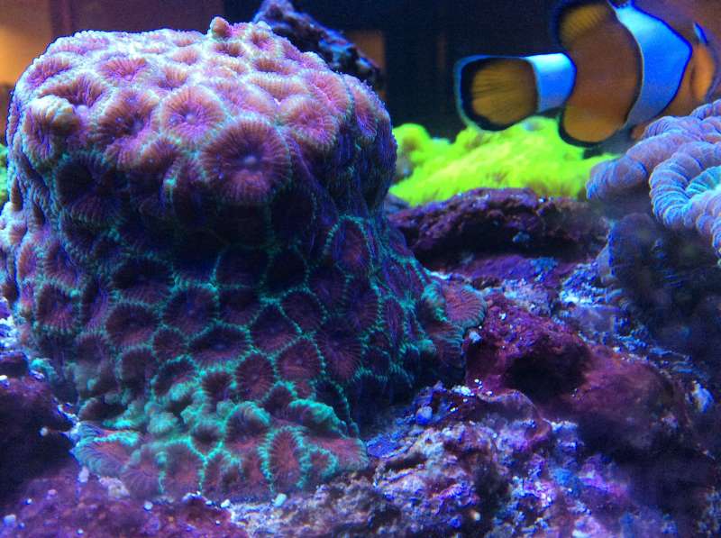 Her er et foto af hele "sandpapir" korallenCarsten skrev:Den som du kalder sandpapir, kunne være en Psammocora, men hvilken er umuligt at se ud fra billedet.charlie saltvand skrev:Polyp krig.