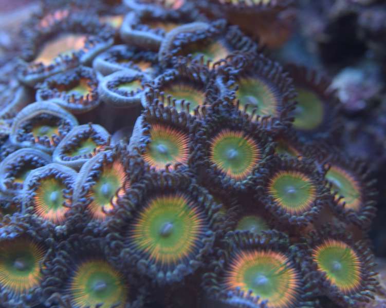 Zoa'er laver bæ som de fleste andre dyr og det er så det du ser på foto, nogle bruger lang tid på at diskutere om de laver bæ eller om de "regulere" deres symbiose alger, men det er sikkert at det du ser er helt normalt og ikke nødvendigt at bekymre sig over.