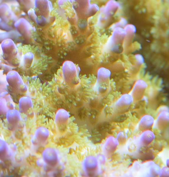 Acropora Sticky situation. Den ligner en A. yongei ”Bali slimer”, den har bare blå spidser. Men hvorfor navnet?