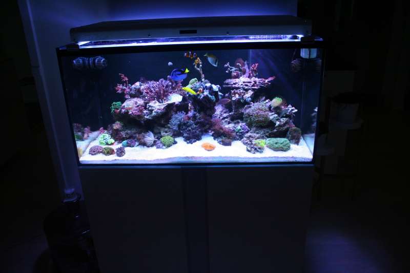 det har stået og kørt små 2 måneder og nu gad konen ikke at have to akvarier stående i stuen længere så nu måtte det levende flyttes over fra mit gamle 120 L.
