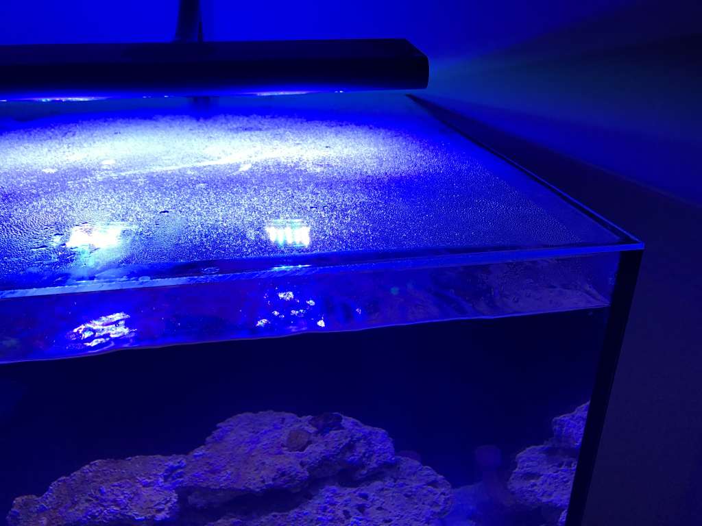Første indtryk: det er sgu håndværk, den er forholdsvis tung og har kun fundet én del i plastik og det er den skærm som dækker led-dioderne. At sætte den på akvariet med indbygget gooseneck er sgu lidt dumt, oh well. Har prøvet at skrue alle 6 kanaler på 100% på samme tid, så får man da lys for alle pengene. Lampens lys kan via app'en skræddersyes til lige det man ønsker, med alt fra tordenvejr, overskyet, månelys osv. dagen kan deles op i 4 perioder, hvor man frit kan indstille mængden af lys på det forskellige kanaler. De 4 perioder er morgen, middag, aften og nat. dog hvis man er lidt doven kan man bare vælge et område i verden, hvor de ægte rev ligger og kopier lys-cyklusen(og i dem kan der også finpudses) så indtil videre vanvittig imponeret over den, men den rigtig prøve kommer jo først når der kommer nogle koraler under