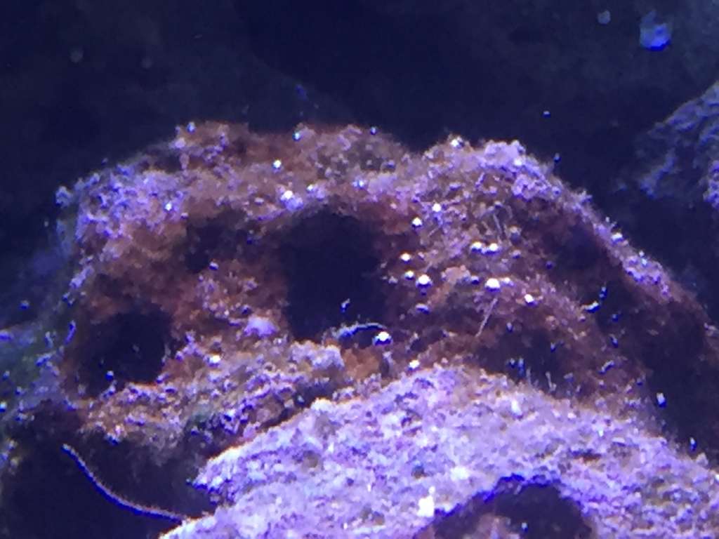 Jeg har en brunlig alge som breder sig fra den lille sten de startede på. Der har ikke været tilføjet noget nyt der hvor dette udbrud begyndte. Algen er synlig hele døgnet men opbygger en masse luftbobler i løbet af dagen. Jeg har for nyligt indstalleret 4 x 54 W T5 over baljen (der kører på ca. 50%) som supplement til mine Maxspect lamper. Jeg er nu i tvivl om mit algeudbrud skyldes "ny indkøring" af systemet med anden lys over baljen eller om det skyldes en algeudbrud. Jeg synes ikke det ligner dino'er + jeg har ikke set bløddyr dø - men hvad er jeres bud og mulig kur? (har kigget Peder's tråd igennem - men ser ikke noget der ligner helt...)