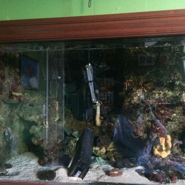 Mega lækkert akvarie Klaus og træls med lamperne, men fedt at forsikringen betalte